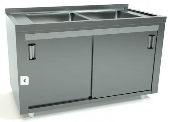 - Διαθέτει 2 συρόμενες πόρτες και μία γούρνα η οποία μπορεί να τοποθετηθεί αριστερά, δεξιά ή στο κέντρο.